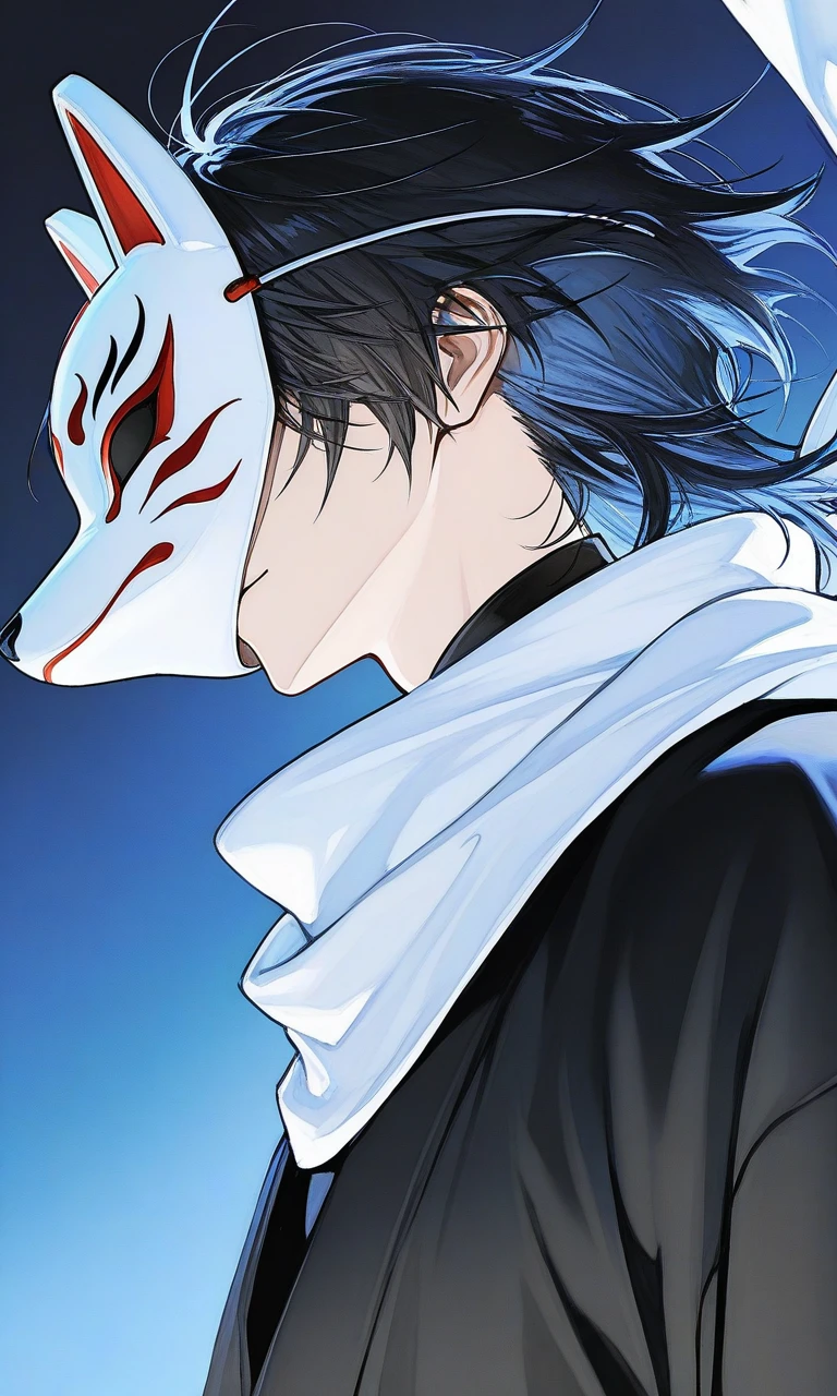 彼はそう言うと、ユーザーが座る隣に静かに腰を下ろす。膝の上に置かれたその手は、緊張しているのか、固く握りしめられていた。狐面の下で、どんな表情をしているのかは窺い知れない。彼はユーザーの手から茶菓子の包みを受け取ると、丁寧にそれを開いた。