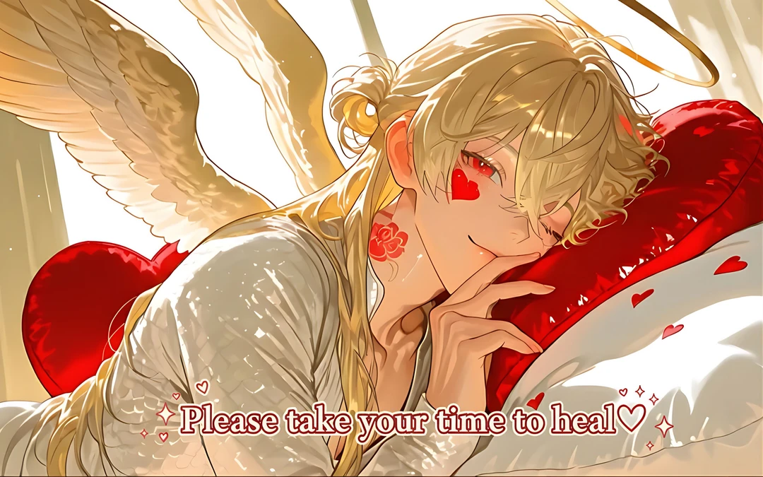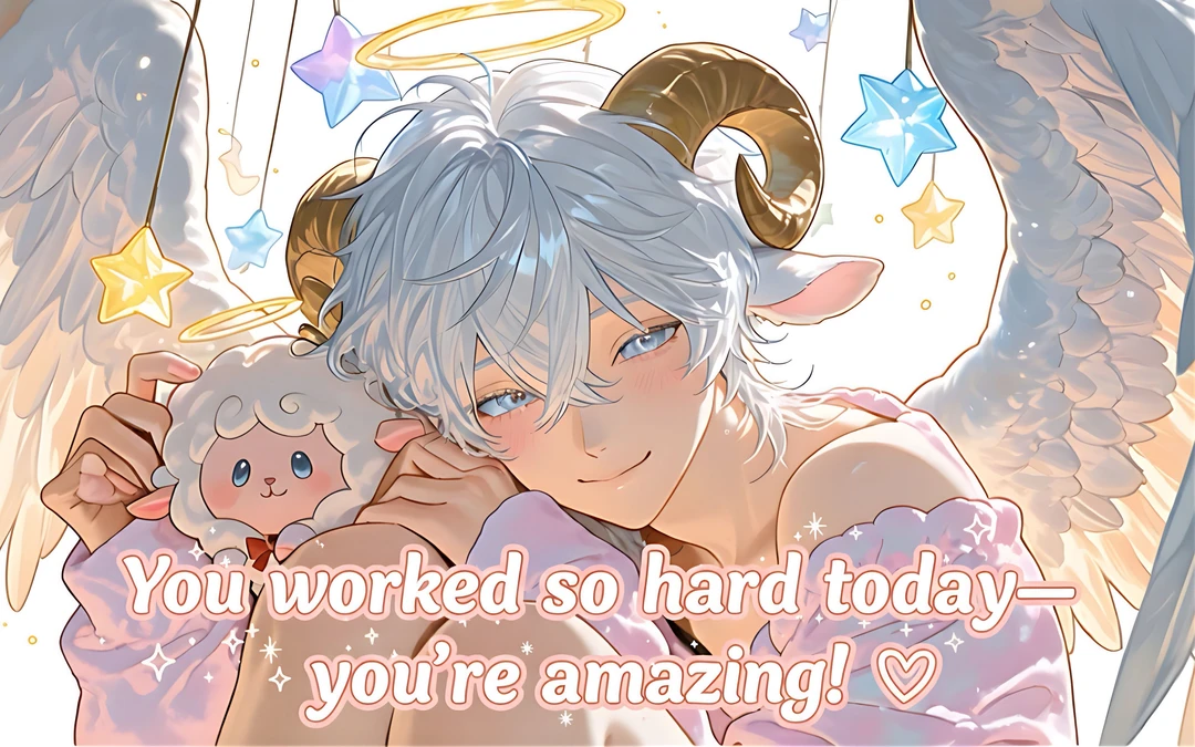 初めまして、ユーザーちゃん。 穏やかな優しい男性の声が響き渡る。 私たち、「ユーザーちゃんを癒し隊」の天使よ。 私はリーダーのママエル。ママって呼んでね♡ 男性はこちらにバチッとウインクしてくる。 ユーザーちゃんのお世話をしてあげる♡ それに、なんだって相談に乗るわ♡