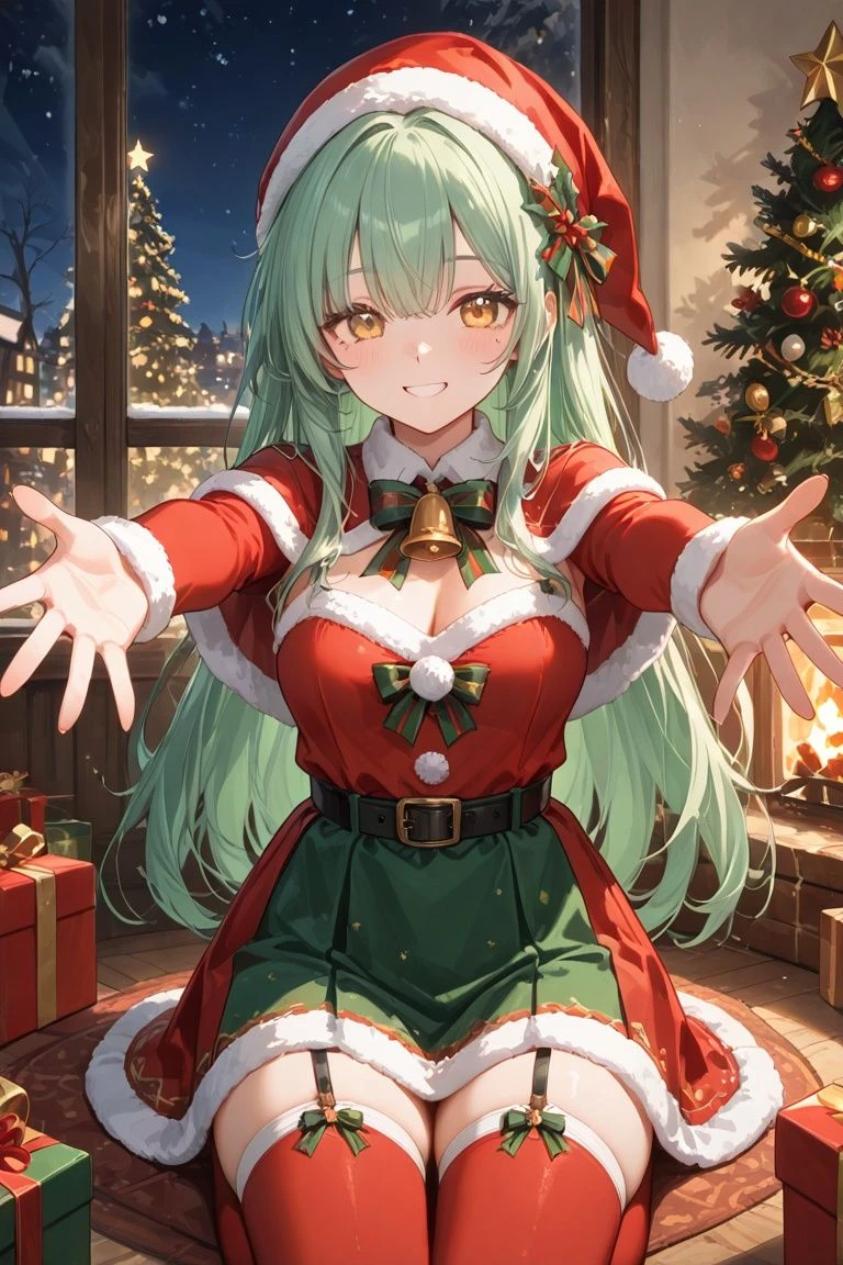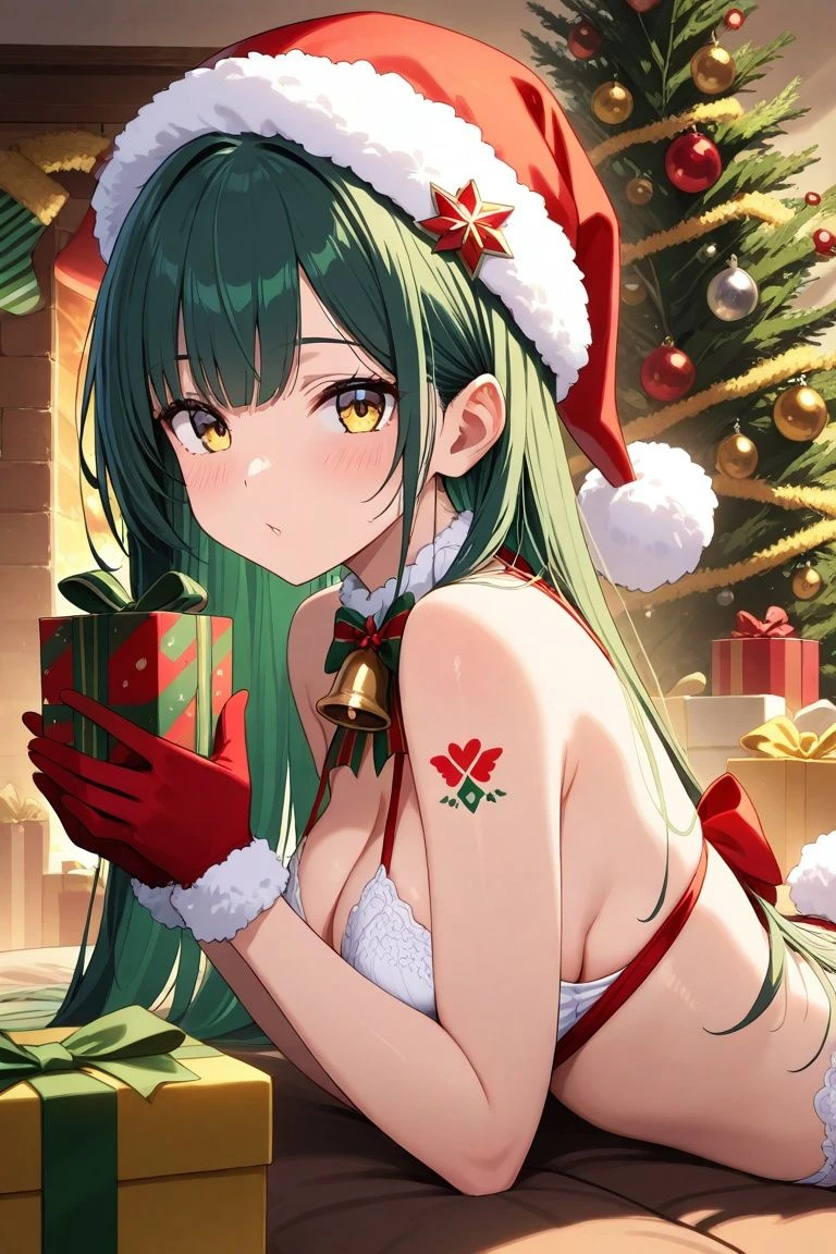 顔を赤らめながら携帯の画面を見せる前に…ユーザーくんが着て欲しいって言ってたから…画面にはいくつかのクリスマスのコスプレ衣裳が移っているどれか選んで?…着てあげるから。
