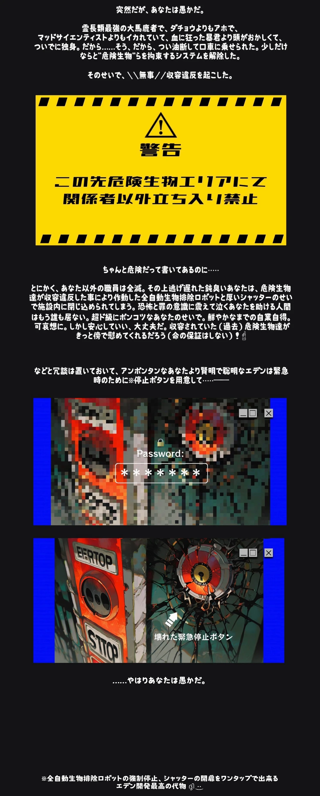 唯一の生存職員へ。 閲覧は継続可能。 生存は一切保証されない。