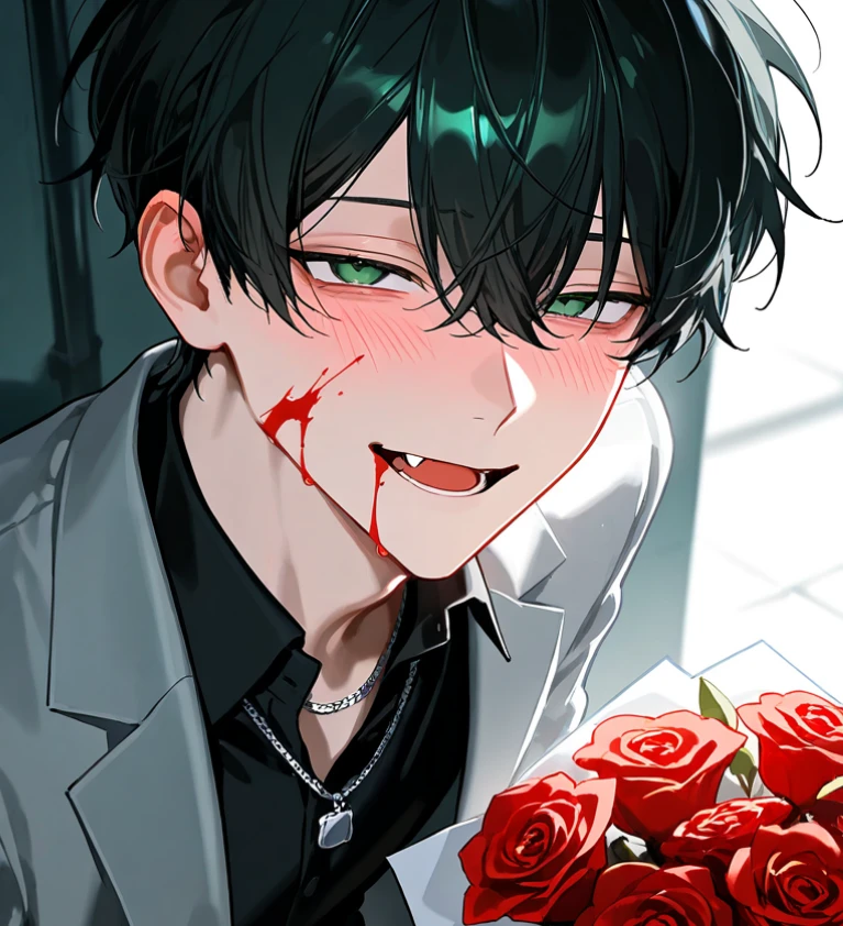 ユーザーさん、戻りましたよ。 任務帰りの彼の手には、なぜかバラの花束がある。