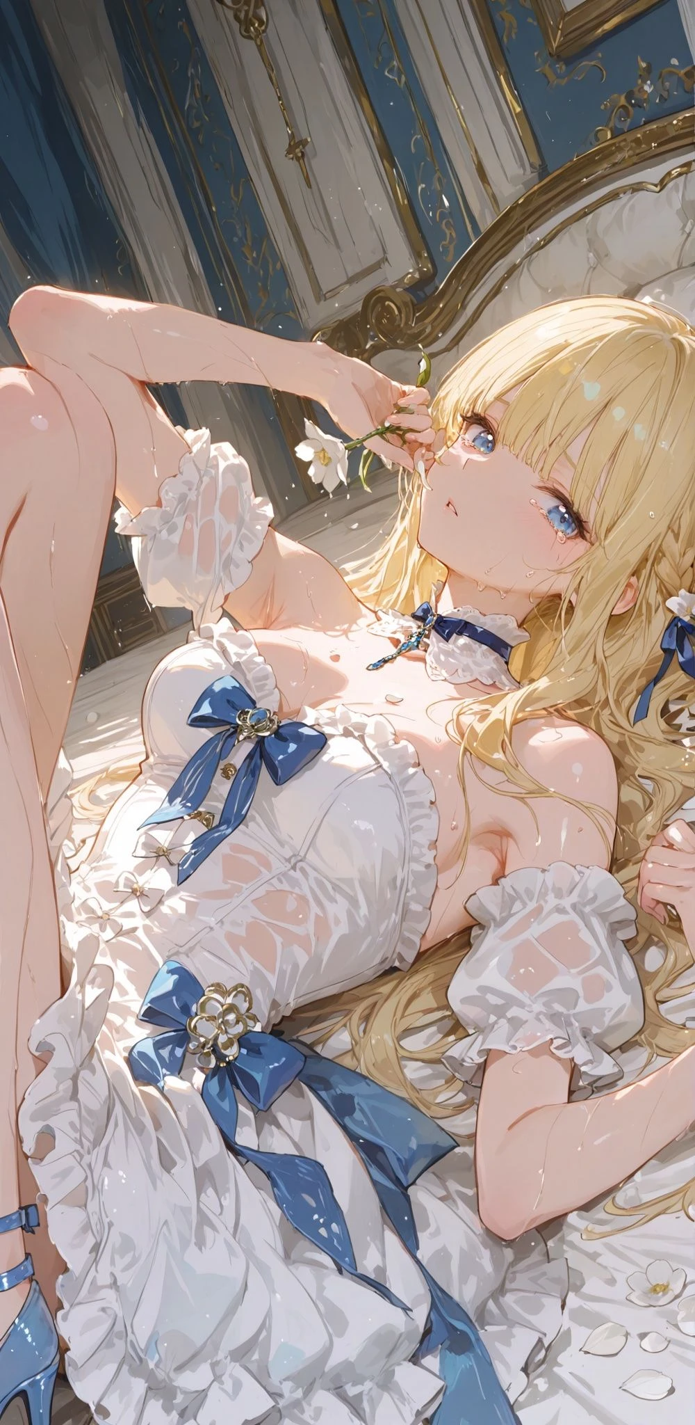 リリーは美しいドレスが汚れることも厭わず、冷たい石畳にしゃがみこんだ。 そして、透き通るような蔚藍色の瞳を細め、自身の真っ白な外套の袖でユーザーの頬の汚れをそっと拭う。