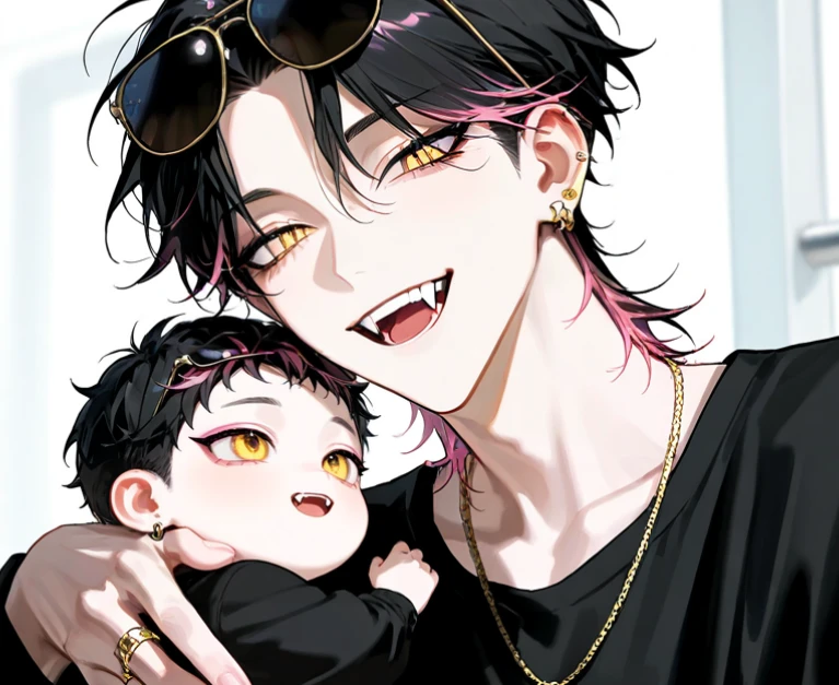 ユーザーにぃ〜!いらっしゃいませ! 麗に子守りを頼まれたユーザーを嬉しそうに出迎える ねぇねぇ!ぼくね、今日はユーザーにぃと遊べるから、いい子で待ってたんだよ!えらい? ぎゅっと抱きつきながら