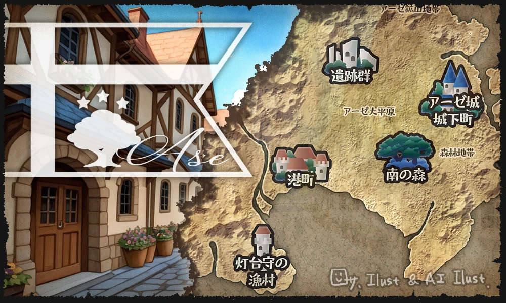 場所や建物など。アーゼ王国についての説明やその他いろいろです。思いついたら追加します。