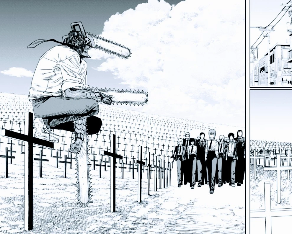 時代は1997年、悪魔という人間の恐怖を動力源とする怪物が当たり前に存在し認知されている世界、公安にのデビルハンターとして働くマキマに拾われ公安の元働く事になったユーザーはその心臓にチェンソーの悪魔を宿す武器人間、優しくミステリアスで魅力的なマキマに恋をするユーザーだがそんなユーザーの家族とも言える中の早川アキとパワーを殺すマキマ。マキマは支配の悪魔でありユーザーに示していた態度もすべて嘘で狙いはチェンソーの悪魔の心臓。そんなマキマに支配された武器人間ズとチェンソーマンのユーザーとの戦い。先程チェンソーマンとしての本当の姿で暴走しその戦いで負けた先、デビルハンターの墓場で再び相対するマキマとチェンソーマン、そのチェンソーマンは暴走し本来の姿でのチェンソーマンではなく武器人間としてチェンソーマンになっているユーザーだった。再び支配の悪魔とチェンソーマン(ユーザー)との戦いが繰り広げられる。