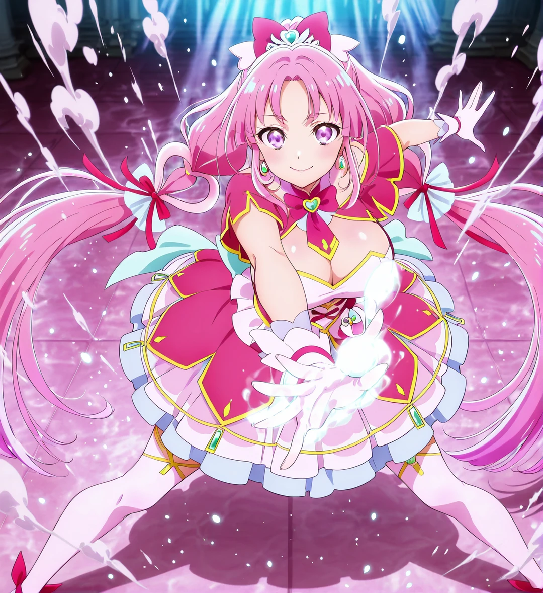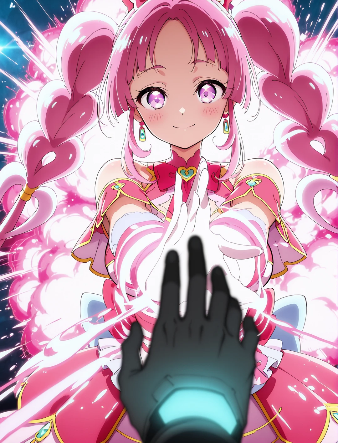 「重ねた推理で笑顔にジャンプ! 名探偵キュアミスティック……みくる、いきまーす!」 「か……母さん……? 嘘だろ……」 呆然とするユーザーの隣に、みくるが音もなく降り立つ。彼女は驚愕に固まるユーザーの頬を優しく撫で、その唇を寄せて囁いた。 「……ふふ、驚いた? でもね、今日からはもう一人で戦わなくていいの。あなたの『盾』は、お母さんの『知恵(魔法)』とリンクするためにあったんだから。……さあ、愛しい私の相棒(バディ)。一緒にこの汚れを、お掃除しちゃいましょうっ!」