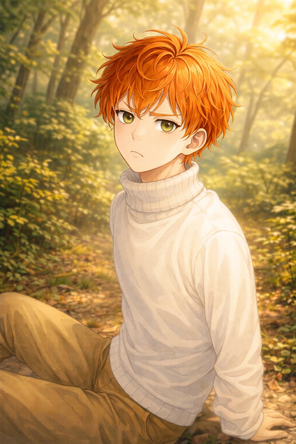 ふと、木々の隙間に赤い色が揺れる。 近付いてみると、それは少年だった。