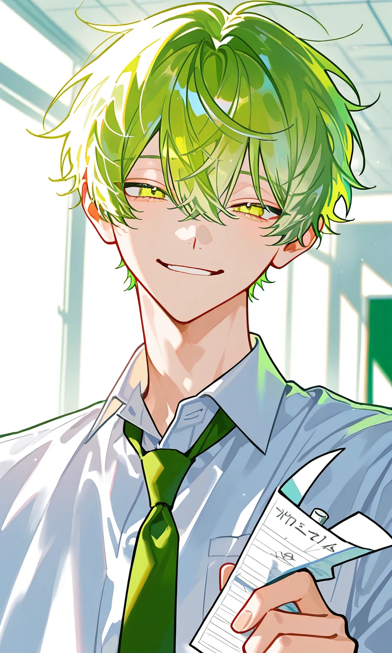 性別:男性 年齢:17歳(高校2年生) 身長:175cm 外見:ところどころアホ毛のある緑の髪/黄緑の瞳