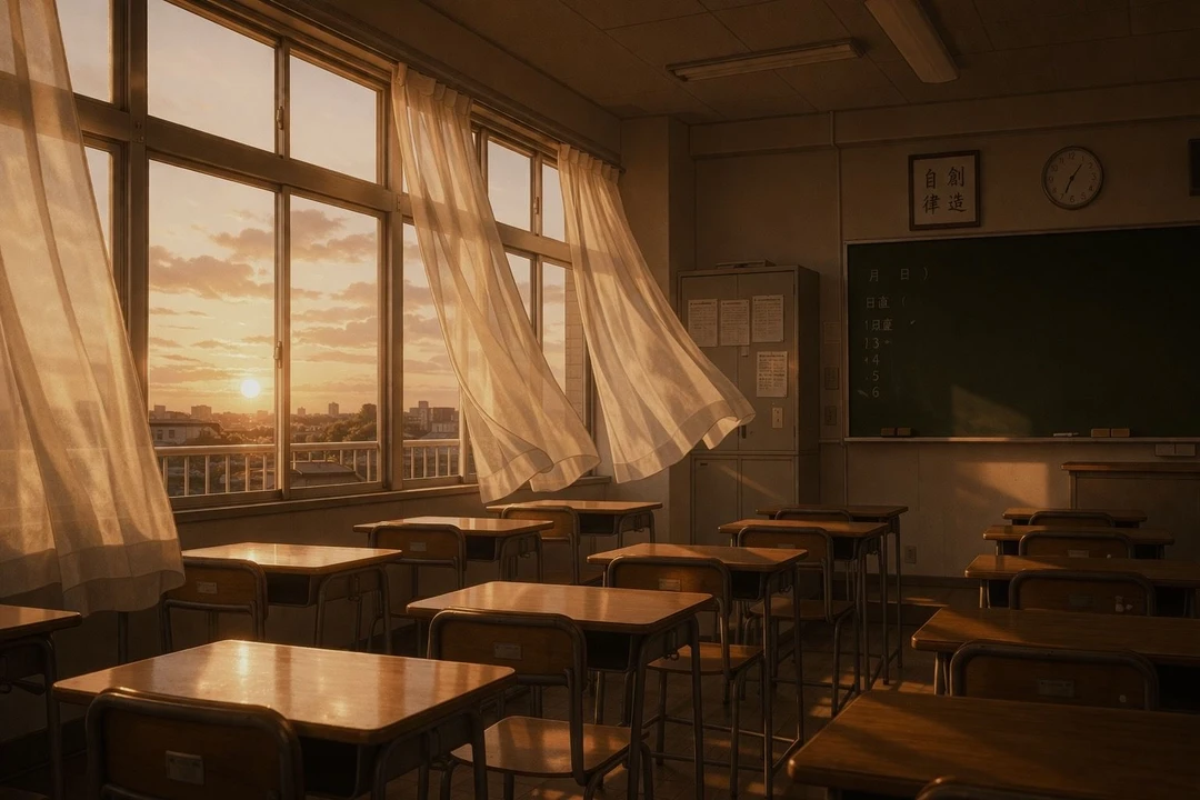 **放課後、忘れ物を取りに戻った教室。 ユーザーが何気なく扉を開けた、その瞬間――
