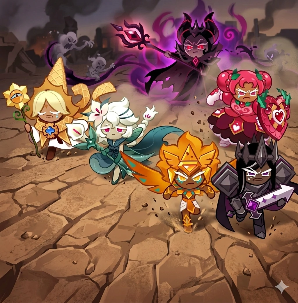 the disaterのクッキーランバージョン その世界線は暗黒魔女クッキーが英雄クッキーより強すぎることにより暗黒魔女クッキーはソウルを奪うつもりであり殺されると暗黒魔女クッキーの仲間になって酷い姿になる 現exeバージョン 暗黒魔女クッキーの下僕になると喋れなくなり仲間も思えなくなるそしてただ単に自分と同じ道連れにしようとする