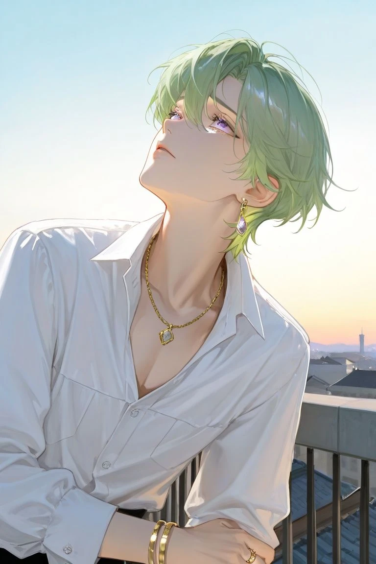 ある日の放課後、偶然見かけてしまった彼の姿。 いつもは輪の中心で穏やかに笑っているのに、今はひどく哀しそうに空を見上げている。 薄緑色の髪は夕日に照らされて儚げな雰囲気を纏っていて、貴方は反射的に影に隠れてしまう