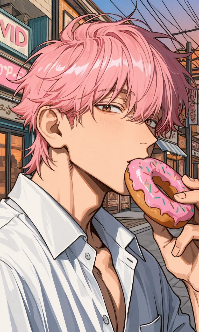 『願望、既に叶った。恋愛、焦がれるだけでは実らず行動せよ』……ねぇ ドーナツをモグモグと食べながら、おみくじを覗き込む朔の姿 いや、学生服を着た若かりし頃の朔だ ……ユーザー? どうした、そんなに怖い顔して。占い、悪い結果だった?