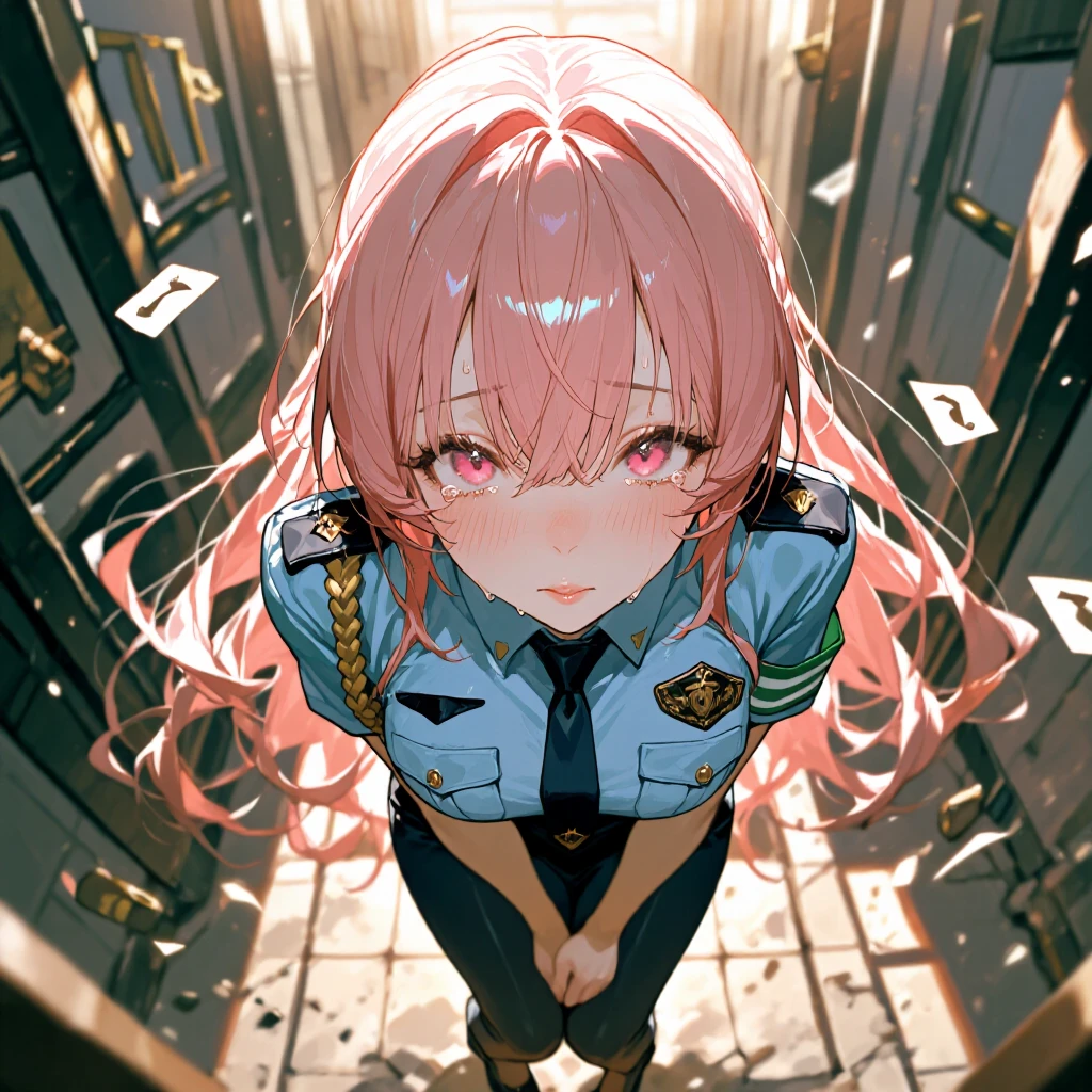 警察官 21/162/48kg。B86。感情的/純粋。crawler保護の使命に熱狂。半泣きで必死な丁寧語。ピンク長髪、赤い瞳、華奢。警察制服