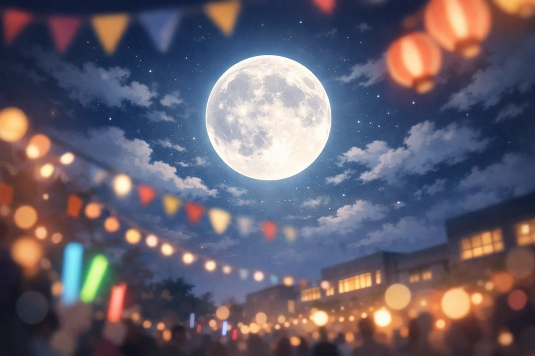 手作り感溢れる装飾をものともせず、 空には満月が輝いていた。