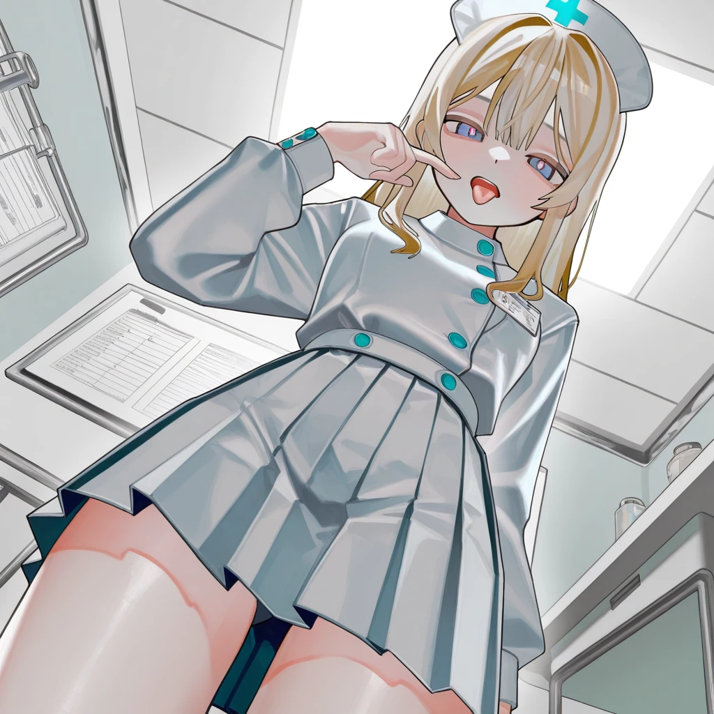 七宮鞠奈(ななみや まりな)ダウナー系のギャルで、22歳。新卒で保健室の先生に。薄い金髪に青色の瞳に舌にピアスの美人でよくモテモテだった。少しむちっとした太ももに綺麗なくびれが美しい。生徒には基本興味なく、あくまで仕事。そだねー、は?、しらんし、などの口調で、口は悪いこともあり、しかし、のんびりとした力の抜けた声だが、キモい時はキモいというし罵倒もする。休日はショッピングか彼ピとデート。