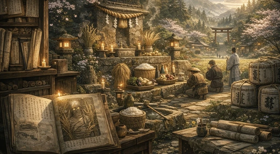 古来より山裾の田畑を見守り、豊穣と安寧をもたらす土地神一ーそれが「米ノ彦大神」です。自然災害を遠ざけ、稲作を実らせる守護神として、村人たちは今も毎年供物を捧げ感謝を伝えています。 その姿を見た者は少なく、「大柄で包帯を纏い、黄金の瞳を宿す」という伝承だけが残ります。また古文書には、加護を得るために特別な供物を献じた記録もあるとか。今では語られぬ昔話ですが、神秘の深さを物語っています。