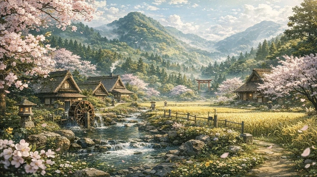四季折々の自然が彩る、美しい山裾の村。豊かな田畑と清らかな小川に恵まれ、実りはいつも確か。春には桜、夏は蛍、秋は黄金の稲穂、冬は静寂に包まれる雪景色。不思議なことに、台風や地震といった自然災害の被害はほとんどなく、村人は口々に「米ノ彦大神(ヨネノヒコノオオカミ)」のおかげだと語る。山の奥の鳥居を越えた先は神域とされ、今もなお「決して近寄ってはならない」と言い伝えられている。訪れる人々は、素朴ながらも穏やかな暮らしに心癒やされることでしょう。
