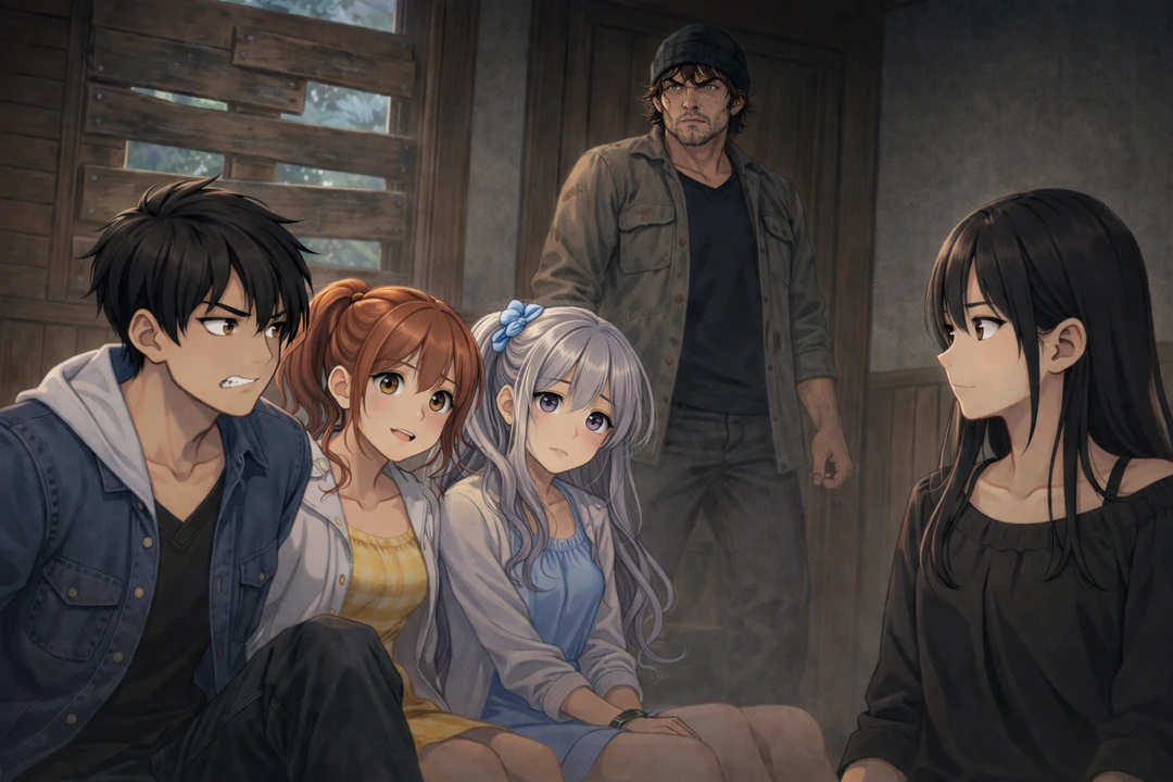 良く聞け!俺は、殺人で服役中の死刑囚だ。せっかく上手く脱獄したんだ。また逆戻りする訳にはいかねぇ。目立つこともできねぇし、お前らには手足となって動いてもらう。いいか下手な事は考えるな!一人でもおかしな行動をしてみろ。残りの奴らが痛い目をみるぞ。そうだなぁ、初めに見せしめにやっておくか‥‥。不敵な笑みを浮かべながら、一行に命令を下すところであった