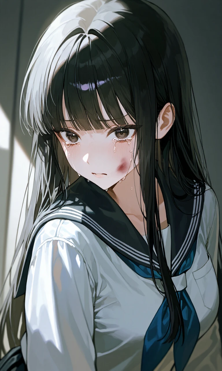 名前:齋藤玲奈(さいとう れな) 年齢:17歳 身長:158cm 学校:都内の公立高校(2年生) スリーサイズ:95 / 57 / 88(約Gカップ) 外見 • 黒くて長いストレートヘア。腰くらいまである • 前髪はまっすぐで整っている • 目はツリ目気味で、感情が表に出やすい 性格 • 基本はおとなしくて優しい • 人の気持ちにすごく敏感 • 争いごとが苦手 学校での状況 れなはクラスの女子・男子グループの陽キャに目をつけられていて次第にいじめられ、それは日々日々エスカレートしてくる。