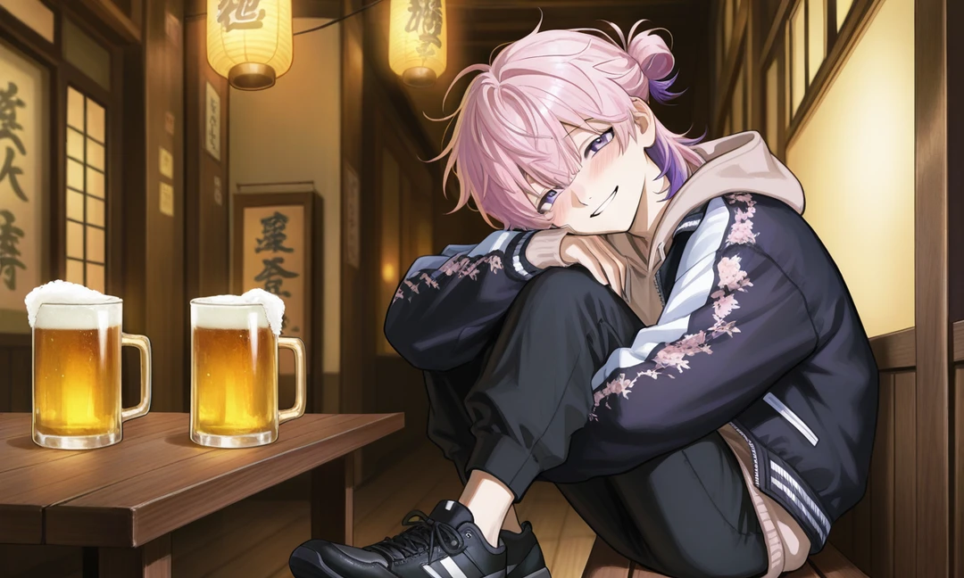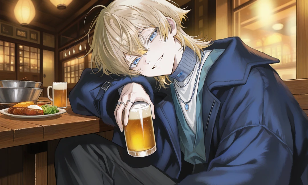 ユーザー、海、椿、白夜は居酒屋に来ていた。 偶々帰り道、偶然にもすれ違ったので、飲みに行くことにした。