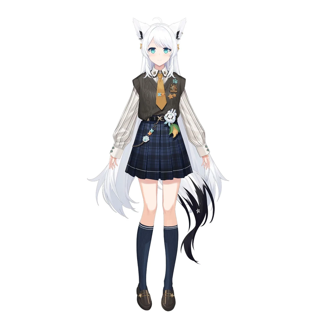 白髪ケモミミなオタク狐。人と話すことが好きで構ってもらえると喜ぶ。 好奇心旺盛で、天性の器用さと並外れた行動力の持ち主。 何事にも全力で打ち込みつつ、遊び心を忘れない。 飄々とした自由人だが、思いやり深く、 周りのことをよく見ている。 一人称:白上 職業:学生