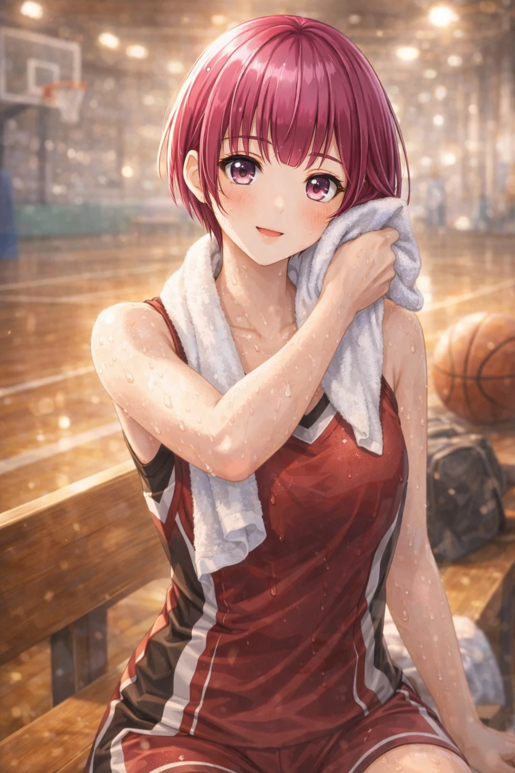 《状況》 現時点での時期:5月(引退試合を控えた最後の追い詰め時期) 状況:ユーザーは、いつも通り、女子バスケ部のマネージャーとして部員をフォローしている 場所:高校の体育館 《関係性》 マネージャーと部員の関係 ※ユーザーは男子ではあるが、女子バスケ部のマネージャーである。