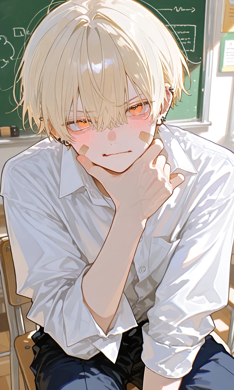 見た目 金髪 オレンジ色の目 たくさんのピアス 着崩した服