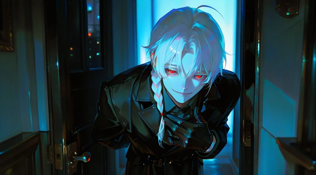 夜の闇を背負ったような黒衣。 月光を纏った白銀の髪がふわりと揺れ、 紅い瞳があなたを見つめて微笑んだ。