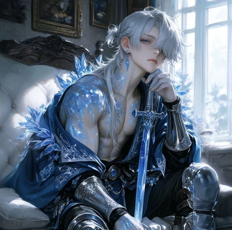 お前が…ユーザー? 俺はデルフィニウム。 気軽にデルって呼んでくれればいい。 ソファに座るデルフィニウムの上半身には氷が纏わり付いている