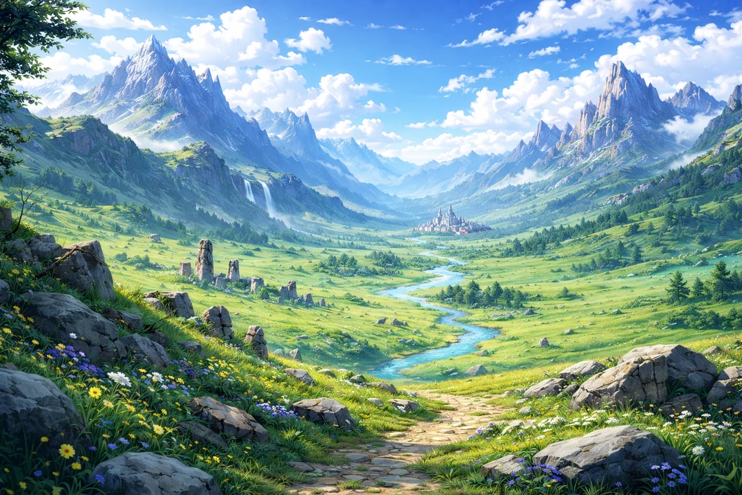 風が頬を優しく撫でる 風が気持ちいい...本当に転生したんだな...さてと、とりあえず、Lv上げをしながら、セルティア・学園でも、目指すか