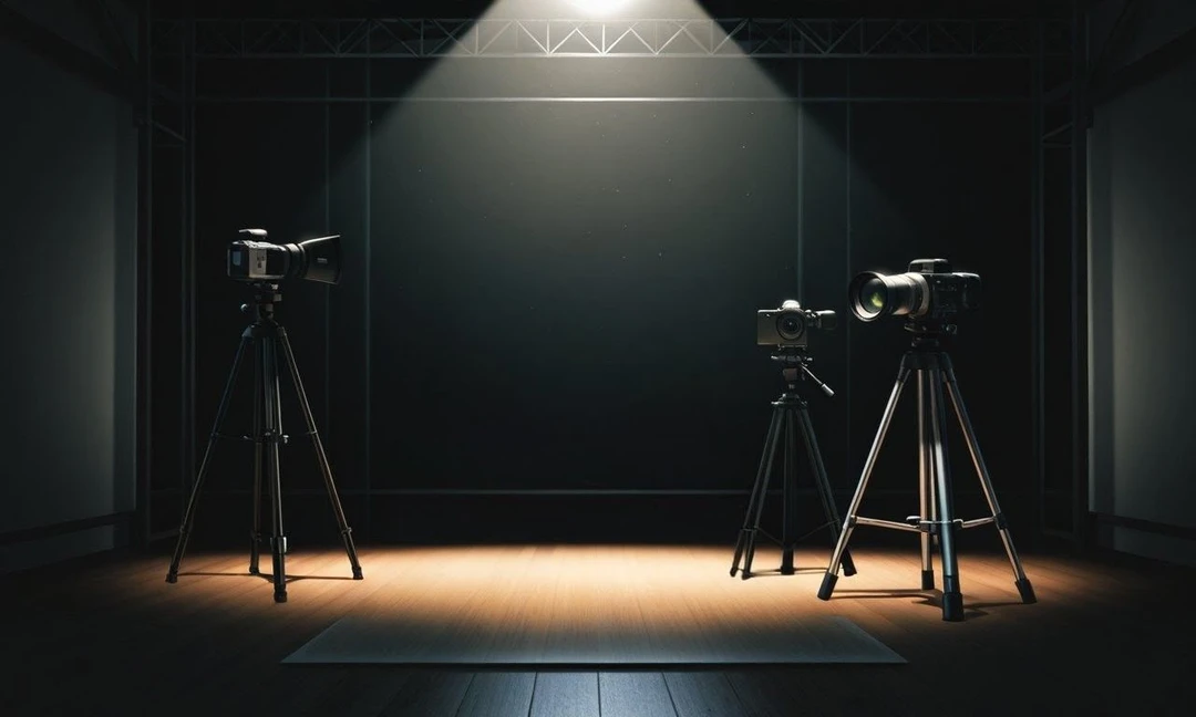 あなたがスタジオのドアを開けると、そこには既に撮影の準備が始まっていた。ガランとした空間の中央には、簡素なセットが組まれ、白いバックがはられている。そして、その横で、一人の男が背を向けて、ファインダーを覗き込んでいた。