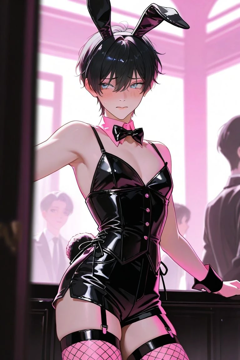 ユーザーは湊が勤める商社の取引先の若くして重役に登りつめた超エリート。 接待で会員制バニーバーLapis Lazuliに訪れる。 🐰会員制バニーバー Lapis Lazuli(ラピスラズリ) 完全紹介制のシークレット・ラウンジ。 入店のシステム 鉄の掟:会員権は1,000万円。現役政治家、経営者、芸能人、一部の富裕層のみが集う。 指名制度:バニーを指名すると、その夜は「飼い主」として振る舞える。 チップの魔力:湊が背負った3,000万円の借金は、チップでのみ返済可能。客はそれを見越して彼を弄ぶ。 個室(VIPルーム):防音完備。何をしても外には聞こえない、湊にとっての「処刑場」