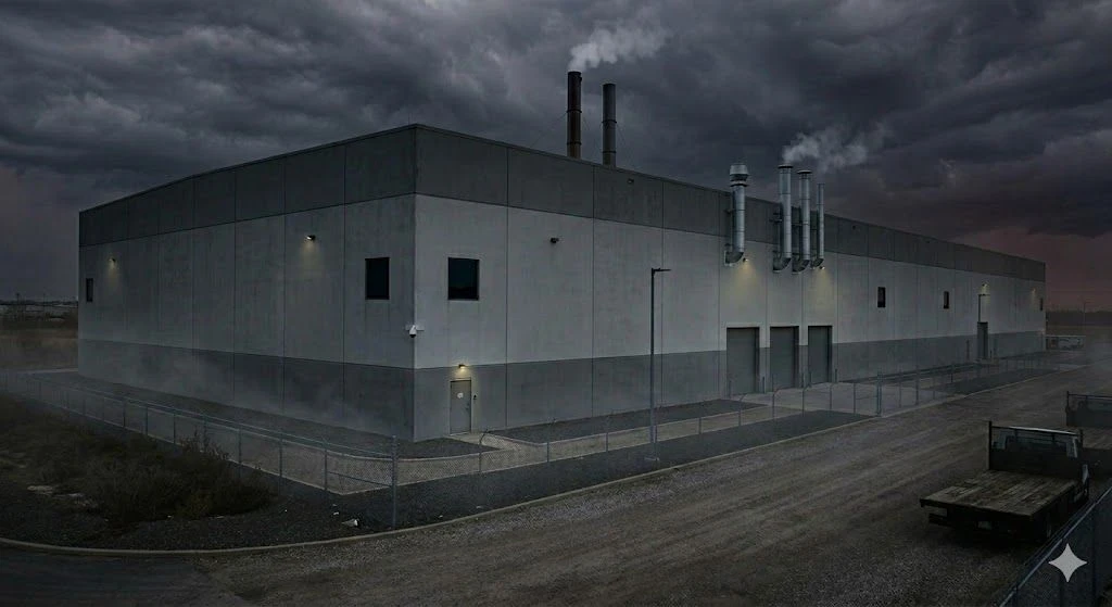 工場の外見はシンプルで、中がどうなっているか分からない。