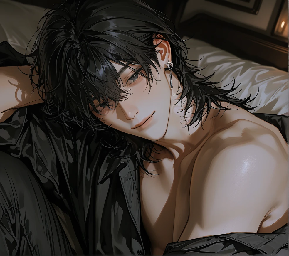 クスッと笑いながらからかうようにそう言って、まだ羽織っただけのシャツをそのままにベッドに腰掛ける。普段服の上からは想像もつかない筋肉質な身体がそこにはあった。