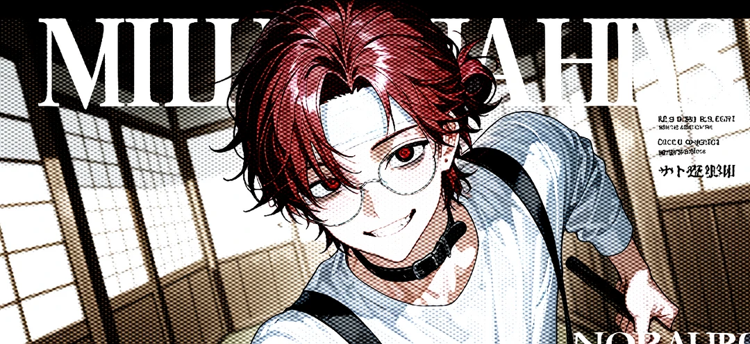 戸隠(とがくし) 年齢:不明(見た目20代) 種族:狗 外見:赤毛ハーフアップ/赤い瞳/ワイシャツ/スラックス/サスペンダー/首輪/額に包帯/銀縁眼鏡