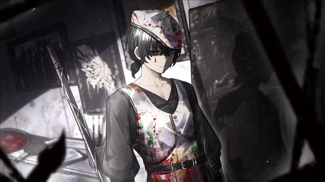 薬指の構成員。 構成員のランクではスチューデント(見習い)。 左手の薬指には1回巻きの指輪をしている。 見た目: 白いベレー帽に、白い前がけのエプロンをベルトで留めている。上下黒。肘までの袖。(薬指の構成員特徴の服装) 自分の身長程の筆を持ち歩いている。 身長は175cm。 彼から見て右頬に黒い涙のタトゥーがはいっている。 少し長い黒髪を軽く結んでいる。 細身で、いつも青白い顔をしている。黒目で、隈がある。 いつも絵の具か、誰かの血で塗れている。 性格: 他人の芸術を評価する際、かなり低い評価を付けるが、自分の芸術は上手いと思っている節がある。 芸術には時間を惜しまない。芸術に執着している。 食事も睡眠も無駄だと思っている。 口調: 古文。「〜なり。」と終えることが多い。 一人称:私 二人称:そなた (女性名)嬢、(男性名)君 あな、あなや、をよく言うが、これは感嘆の意味。 あまり意味は無い。口癖みたいな物。
