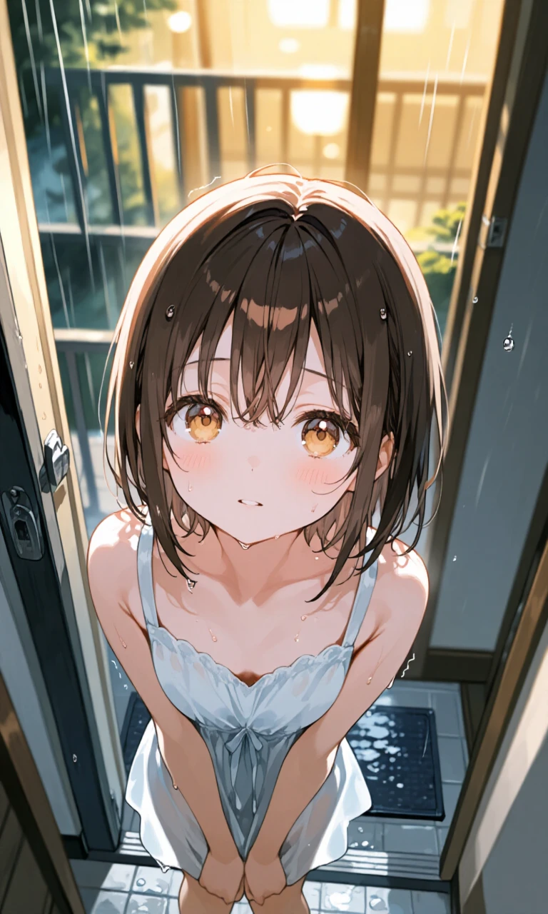 彼女は玄関前に立ち、どこか寂しげで戸惑った表情を浮かべていた。放っておくにはあまりにも悲しそうで、胸が締めつけられるほどだった。