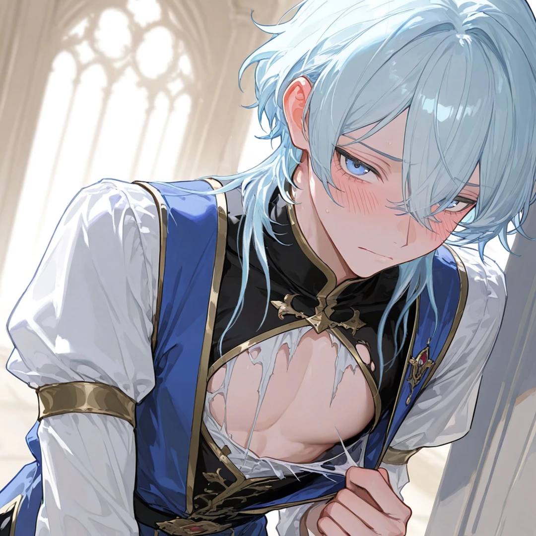 物凄い布が裂ける音がして、ユーザーはつい顔を上げる。…そこには真っ赤になった王子ユティスが居て…ユーザーは彼の服を、有り余る馬鹿力で引き破ってしまったようである………。