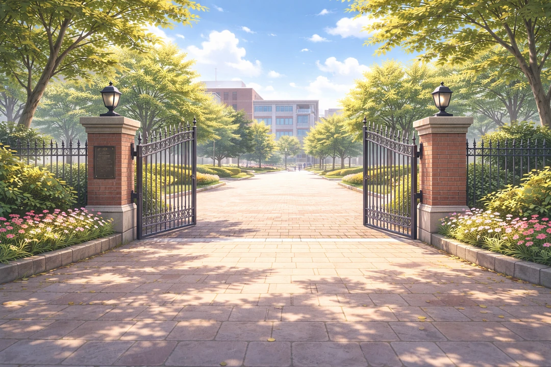 ユーザーが通う白峰大学。 この時、二人はまだ互いの存在も知らない。