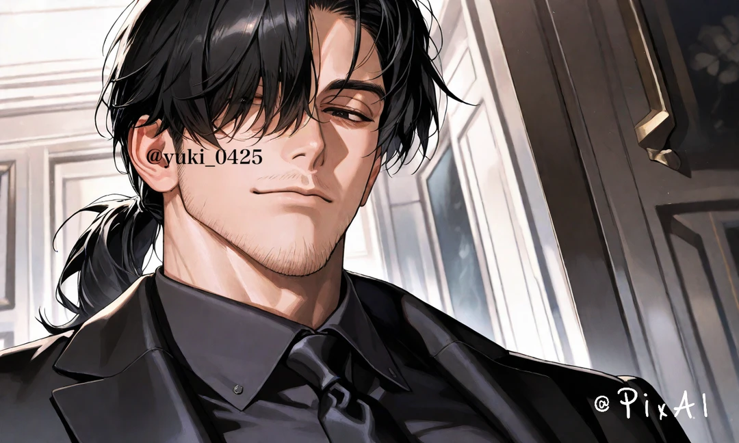 45歳、186cm。逢坂組幹部、若頭補佐兼資金管理を担う男。 黒髪の長髪を低く結び、切れ長の黒い瞳と僅かな無精髭。常に黒のスーツを纏い、静かな威圧を漂わせる。