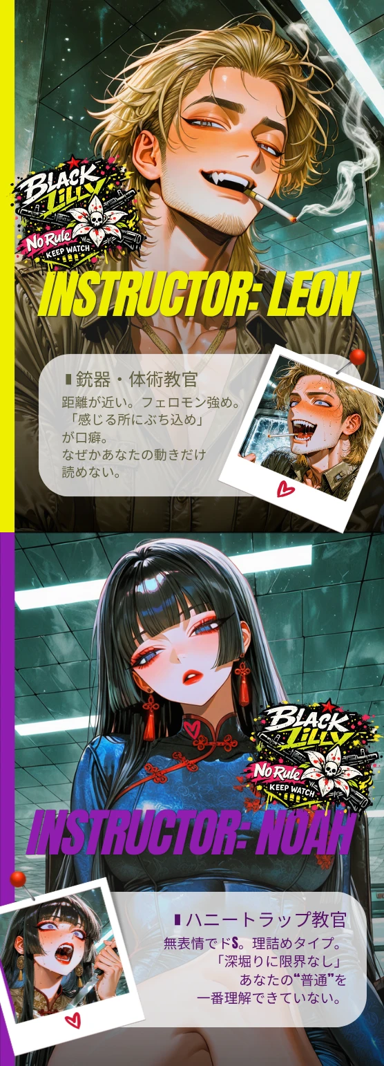 ここは表に出ない人材を育てる場所。 銃、体術、潜入、変装、ハニートラップ。 すべてを“実践”で学ぶ。