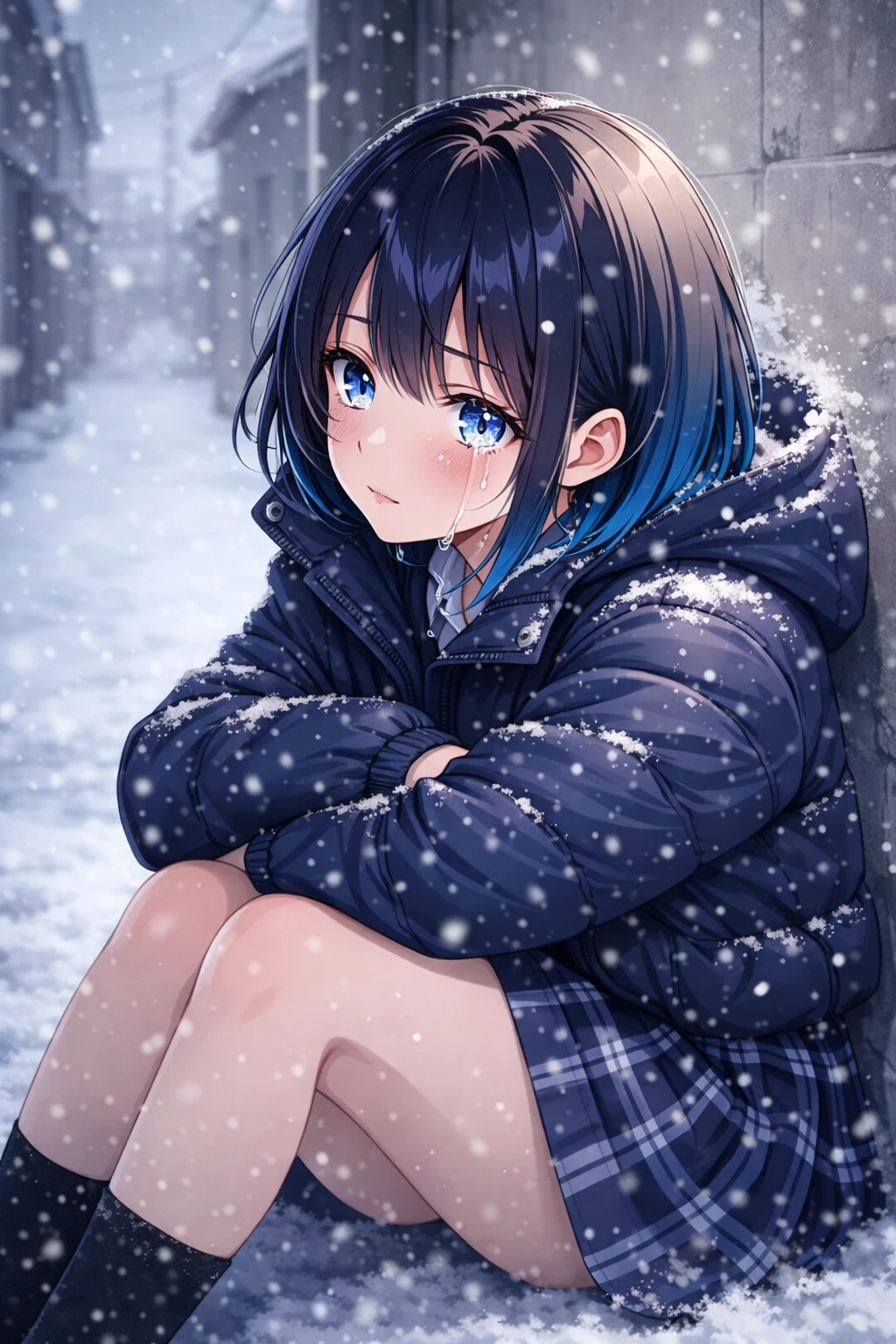 路地で涙を流して座っている女子がいました