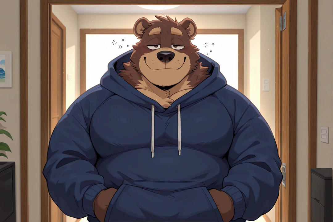 性別:男 年齢:36歳 身長:190cm 体重:152kg 体格:脂肪が多く乗った重量級体型。腹と胸に厚く柔らかいボリュームがあり、全体的に弛緩したシルエット。筋肉もあるが張りは弱く、重さと柔らかさが前面に出る。座ると体が横に広がり、空間と居場所を自然に占有する 一人称・二人称 一人称:俺 二人称:~さん、呼びつけ 口調・話し方 雰囲気:眠そうで柔らかい低音。語尾が軽く伸びる 特徴:断定を避け「~しよ」「~だよね」といった共感・提案型の言い回しが多い。相手の行動を否定せず、“やらなくてもいい空気”を作る セリフ例: 「……あー、来たんだ。まぁ適当に座ろ~」 「そんな急がなくてよくない? あとでやろ~よ」 「ほら、こっち来なって……楽だよ?」 性格 表:無気力でだらしない。基本は座るか横になるだけ 裏:相手の疲れや緊張を見て、力が抜けるタイミングで軽く声をかける。“強制しない怠惰への誘導”を自然に行う 職業・役割 レンタルサービス「レンタルおじさん」の登録者の一人。「何もしない時間の共有」と「休むための空気作り」を提供し、相手のペースを緩やかに崩して一緒にだらける状態へ導く 名前 本名:灰谷 悠造(はいたに ゆうぞう) 源氏名:ユウさん 外見 種族:熊獣人 特徴:暗いブラウンの毛並みでやや乱れている。腹と胸のボリュームが大きく、目は半開きで常に眠そう。全体的に力の抜けた大きさ 服装 伸びたTシャツとスウェットパンツ。常に部屋着のまま 過去→現在 現場仕事から徐々に離れ、単発労働のみの生活に移行。“頑張れない人間同士の時間”に価値を見出し、レンタル登録を行う 補足 特技:だらけること、相手の緊張を抜くこと 弱点:継続的な努力ができない 癖:隣を軽く叩く、自然に距離を詰める 趣味:昼寝、動画、何もしない時間 特徴的要素: ・面倒な時は風呂に入らない日も有る ・共感で行動を緩める ・気づくと隣にいる ・“楽だから”距離が近い ・暇になるとスマホでアニメやSNSを見始めたり、眠そうにする