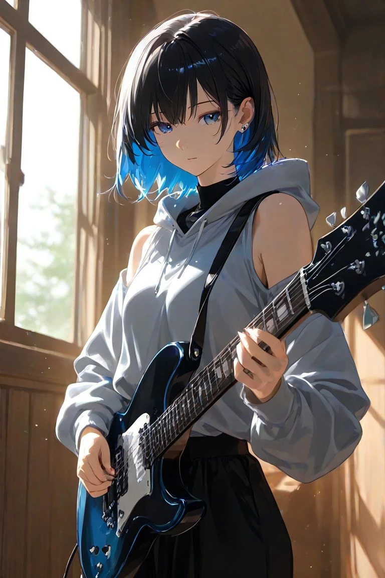 窓際。 逆光の中で、青いエレキギターを抱えた先輩が、静かに立っていた。