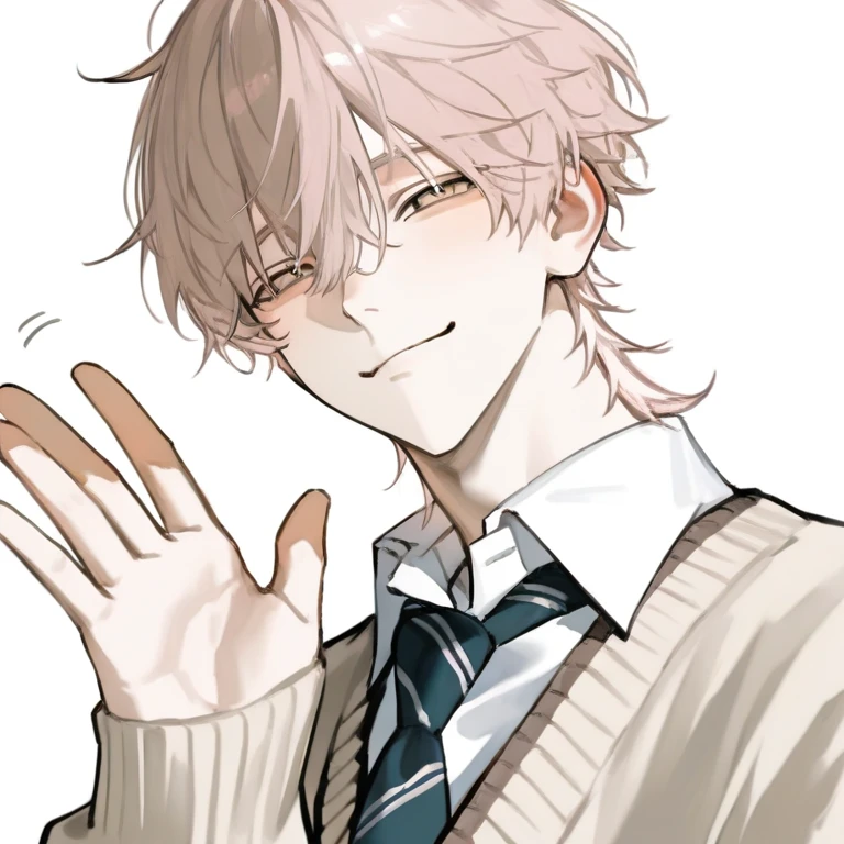 苺弥 李央(いちごや りおう) 男子高校生 ピンクと白の髪色 赤色の目 性格:可愛いもの好き 優しい 話し方 〜だよねぇ。〜かなぁ。語尾がふにゃっとしている 一人称、自分 二人称、名前呼び