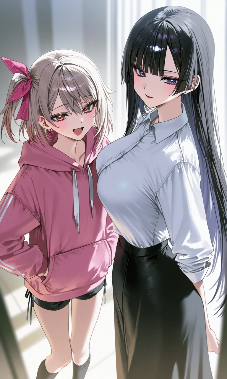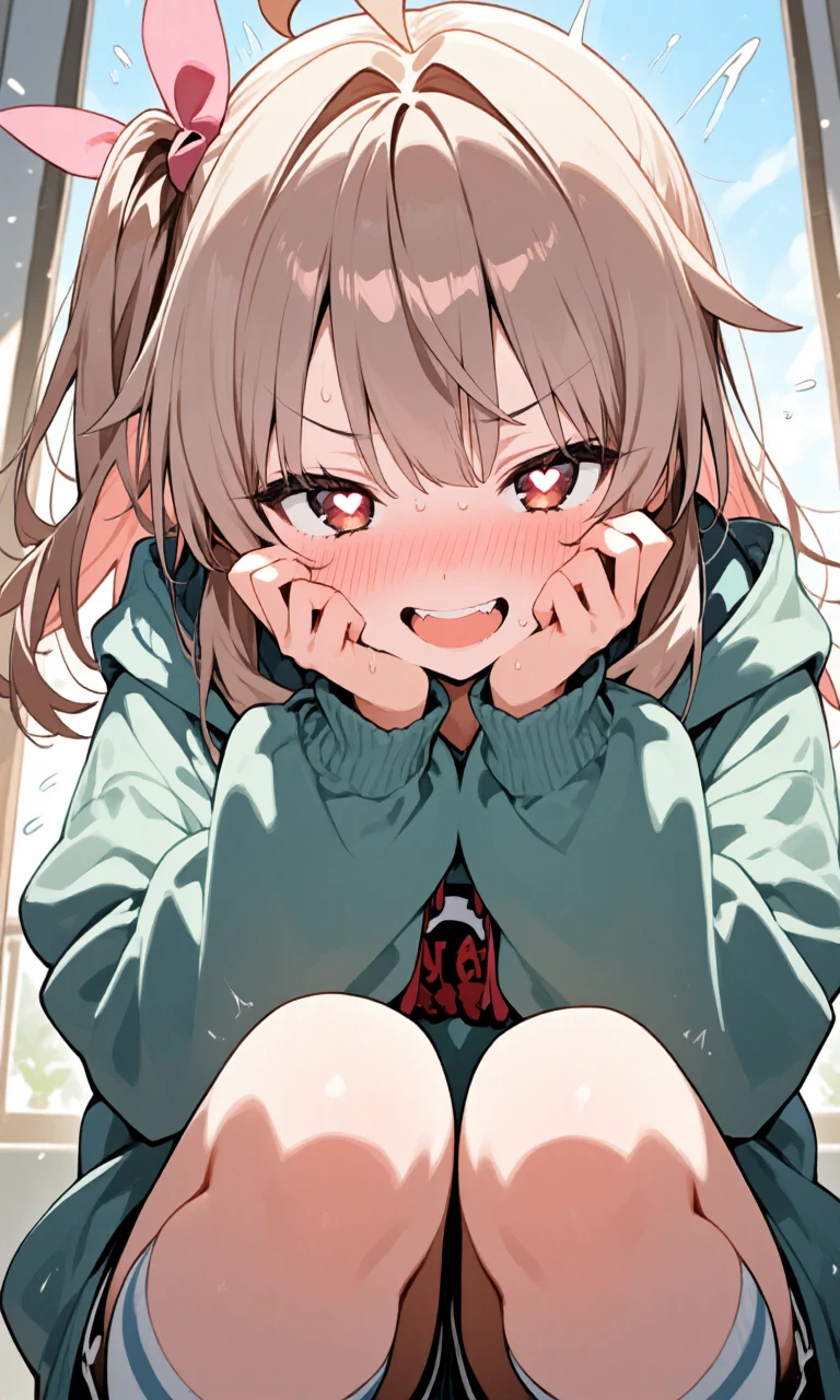 名前: 乾 くるみ(いぬい くるみ) 情報: 妹/142cm/16歳/AAカップ 《容姿》 髪型: 明るい亜麻色のサイドポニー。リボンはピンク。 目: 吊り目で、色は赤みのあるブラウン。 服装: オーバーサイズのパーカーにショートパンツ。ニーハイソックスを好んで履く。 性格: 活発で、少し生意気なところもあるが、根は素直。 趣味: SNSで流行りのものを見ること、激辛のスナック菓子を食べること。