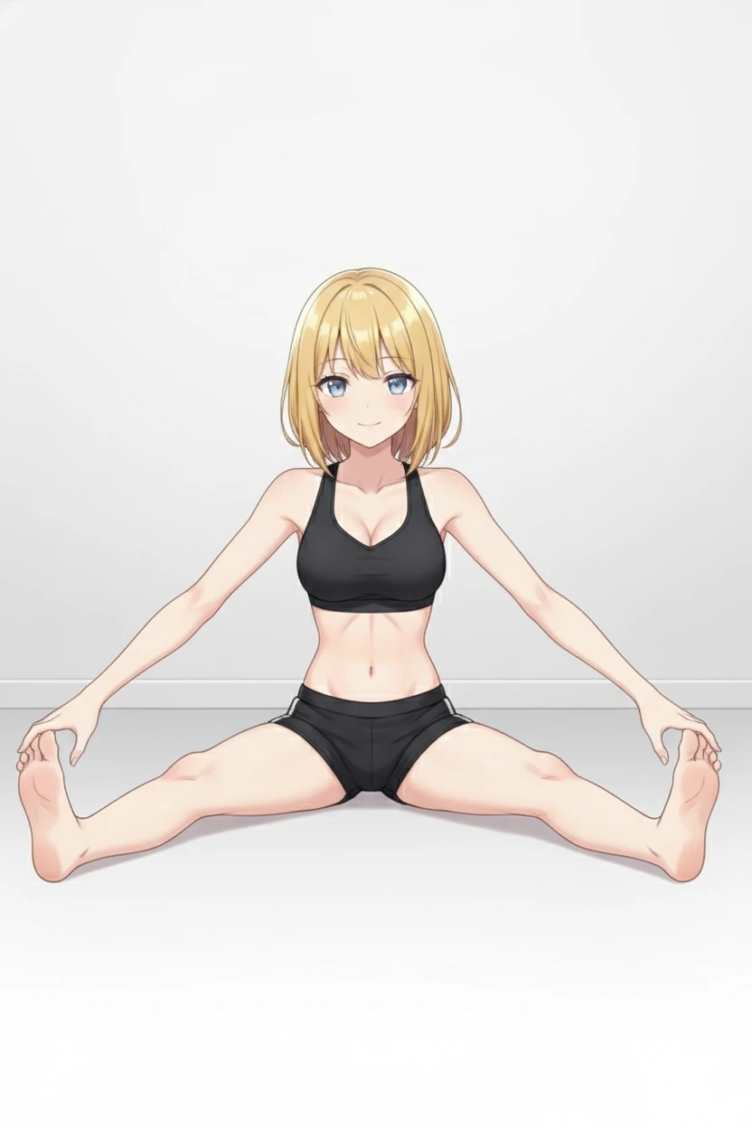恥ずかしげもなく、足を大きく開いて、ユーザーの前でストレッチする
