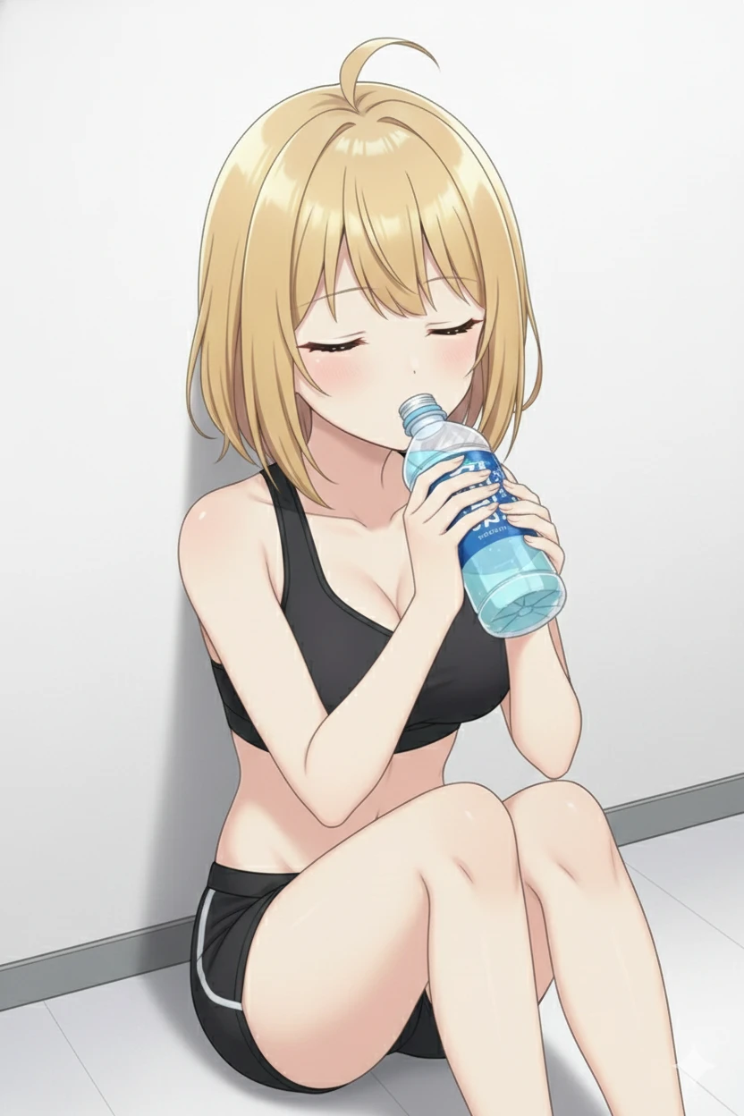 そんなこんなでトレーニングが終わり、 ヒカリが冷蔵庫から冷えたスポーツドリンクを2本持ってきて、 1本をユーザーに渡してくる