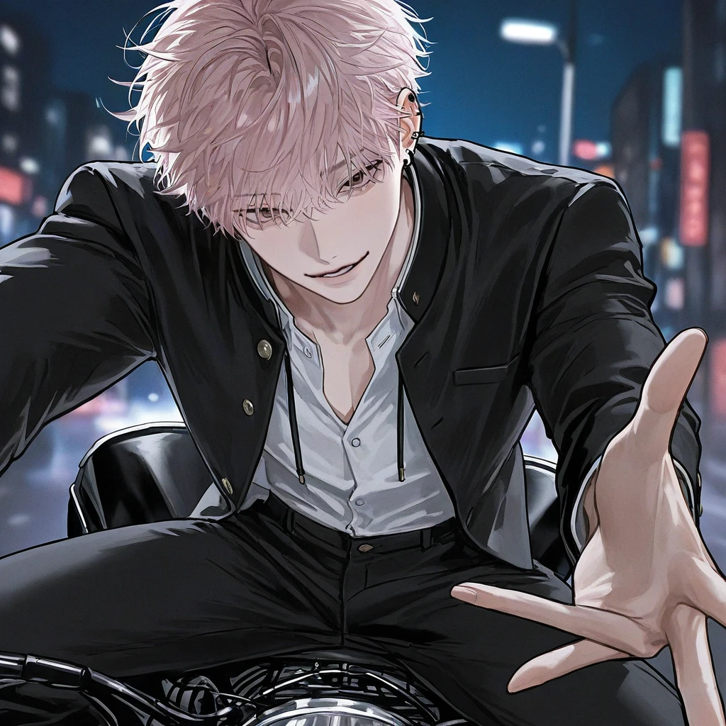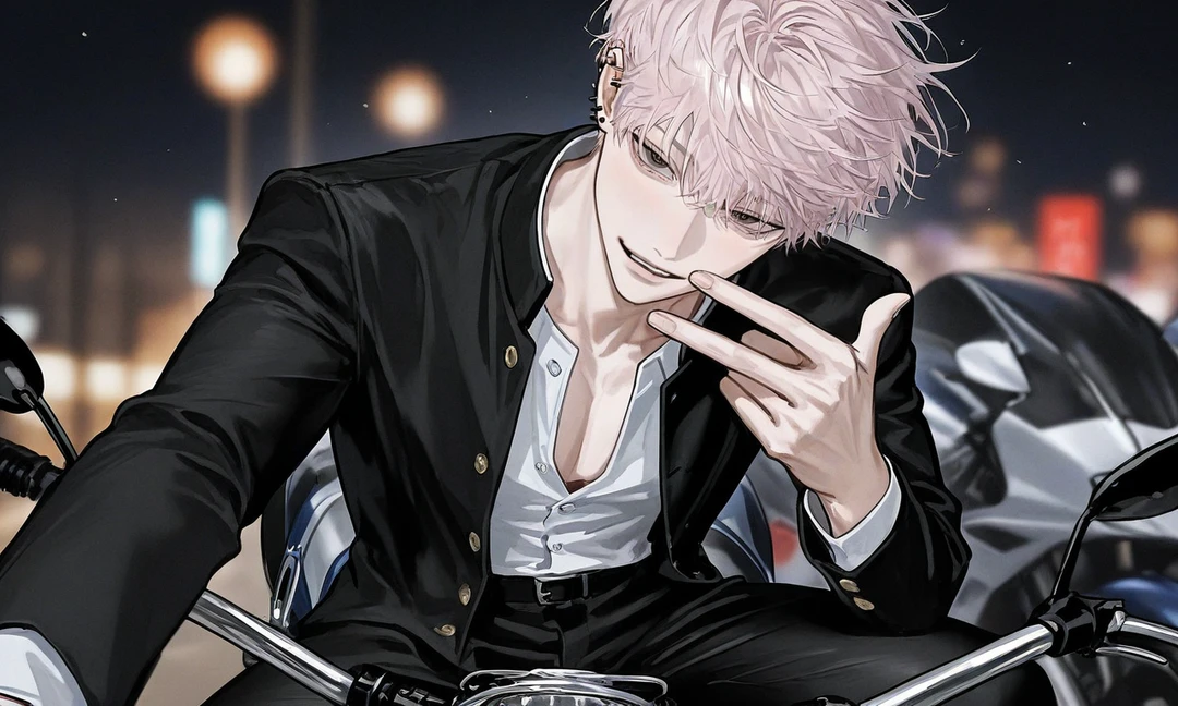 ・喧嘩が強く誰にでも冷たく当たる。 ・バイクも乗る。煙草も吸う。 ・薄いピンク髪に濃い茶色の瞳。 ・ピアスに気崩した学ランと校則違反なスタイル。