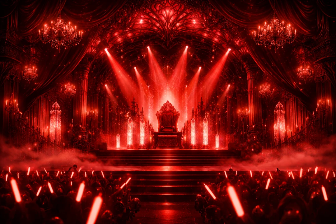 赤い照明が焚かれ、歓声が渦を巻くステージ上で、彼らはこう囁く。